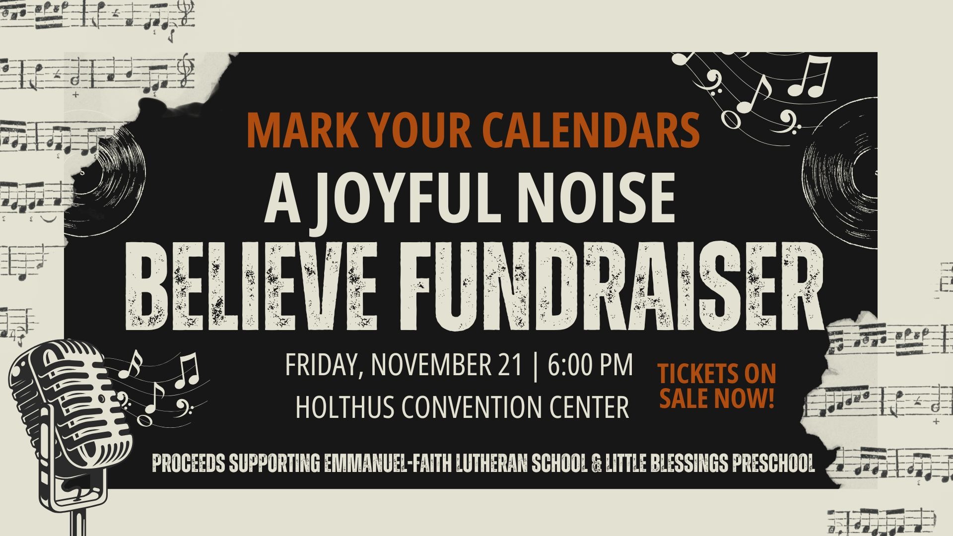 The Believe Fundraiser is an annual event that helps raise funds for various projects at Emmanuel-Faith Lutheran School and Little Blessings Preschool. This event is always held the Friday night before Thanksgiving at the Holthus Convention Center...so mark your calendars! The evening consists of both a live and silent auction, a wonderful meal and plenty of fellowship with parents, E-F Lutheran staff and both church and community members. Past projects that funds have been used for include new desks and chairs, updated technology/computer equipment, updates to the restrooms/locker rooms at Emmanuel Faith, outdoor classroom at Little Blessings Preschool and so many other wonderful projects that continue to improve our schools.
